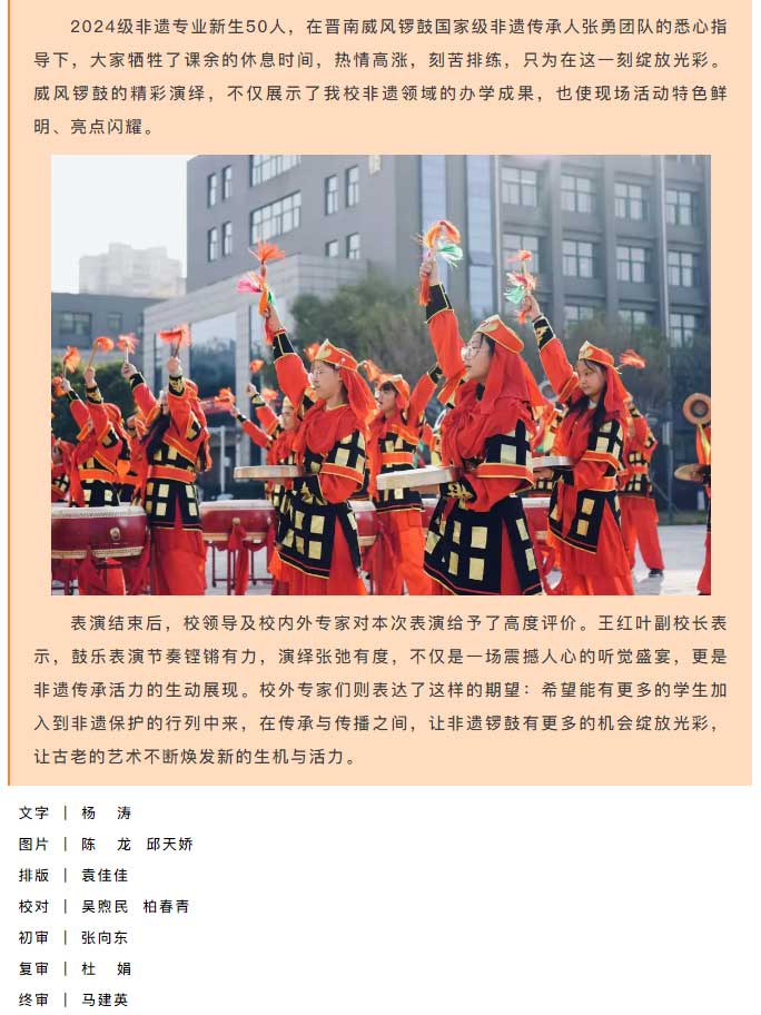 超然!《军威战鼓》响彻校园—我院24级非遗专业学生鼓乐队成功首演